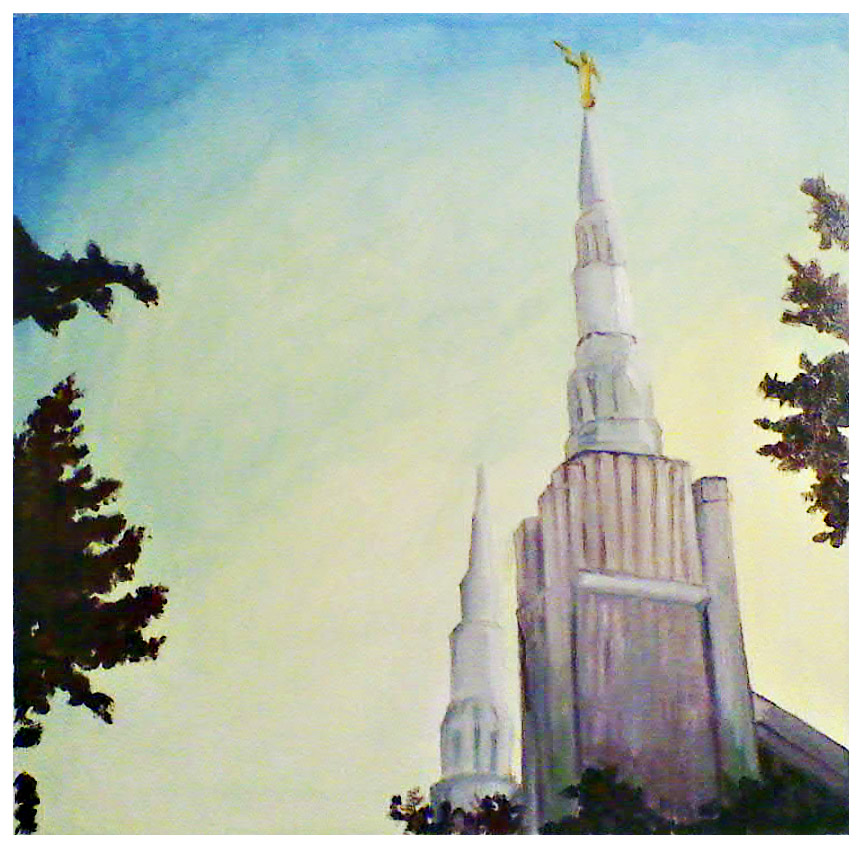 I was asked to decorate for the RS Enrichment night, which was all about the temple. I had a couple of Salt Lake temple images that I used, but I figured we needed the Portland Temple, too. I just did this simple painting… nothing super special, but I kind of like the way it turned out. I think we’ll put it in our bedroom.