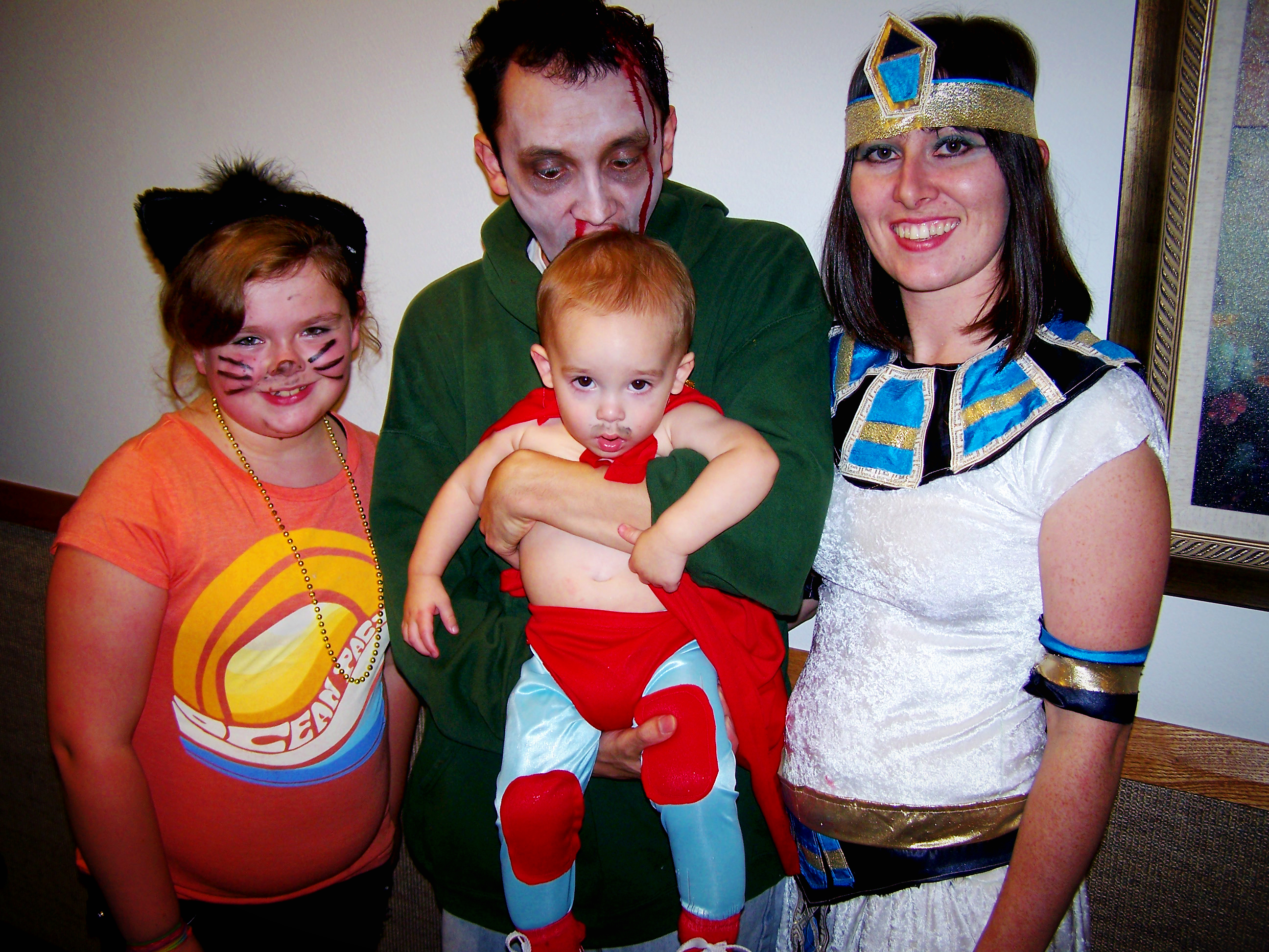 The year before last Liam was Nacho Libre, Mike was a zombie, and I was Cleopatra. We had the mask for Liam, too, but he wouldn’t wear it, so we have no pictures of it. 😦
