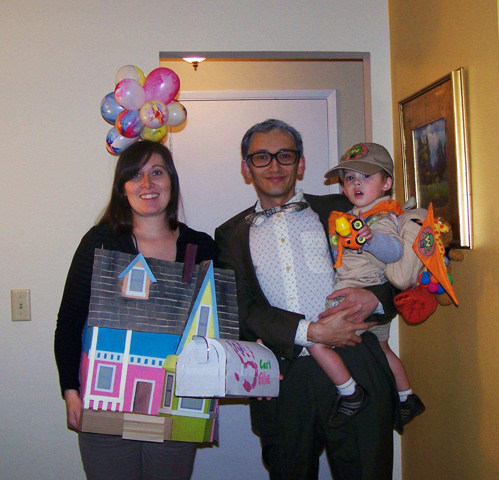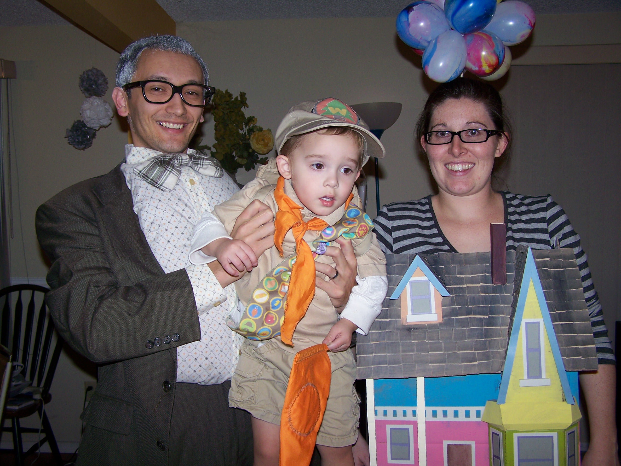 Last year I was pregnant with the twins- and huge- so I was the Up house. Liam was Russell and Mike was Carl. These were very fun costumes and really made people smile.