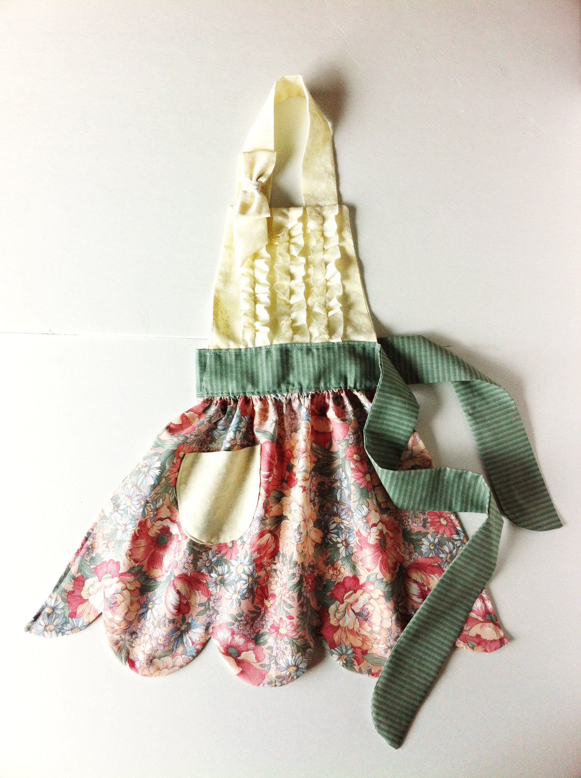 Liam’s cute friend, Avery, turned 4 last week. Liam wanted to give her a present. He loves to help me make cookies and do chores while wearing his apron and thought that Avery needed an apron as well. So, I made a cute, girly, ruffley apron for a sweet little girl.
