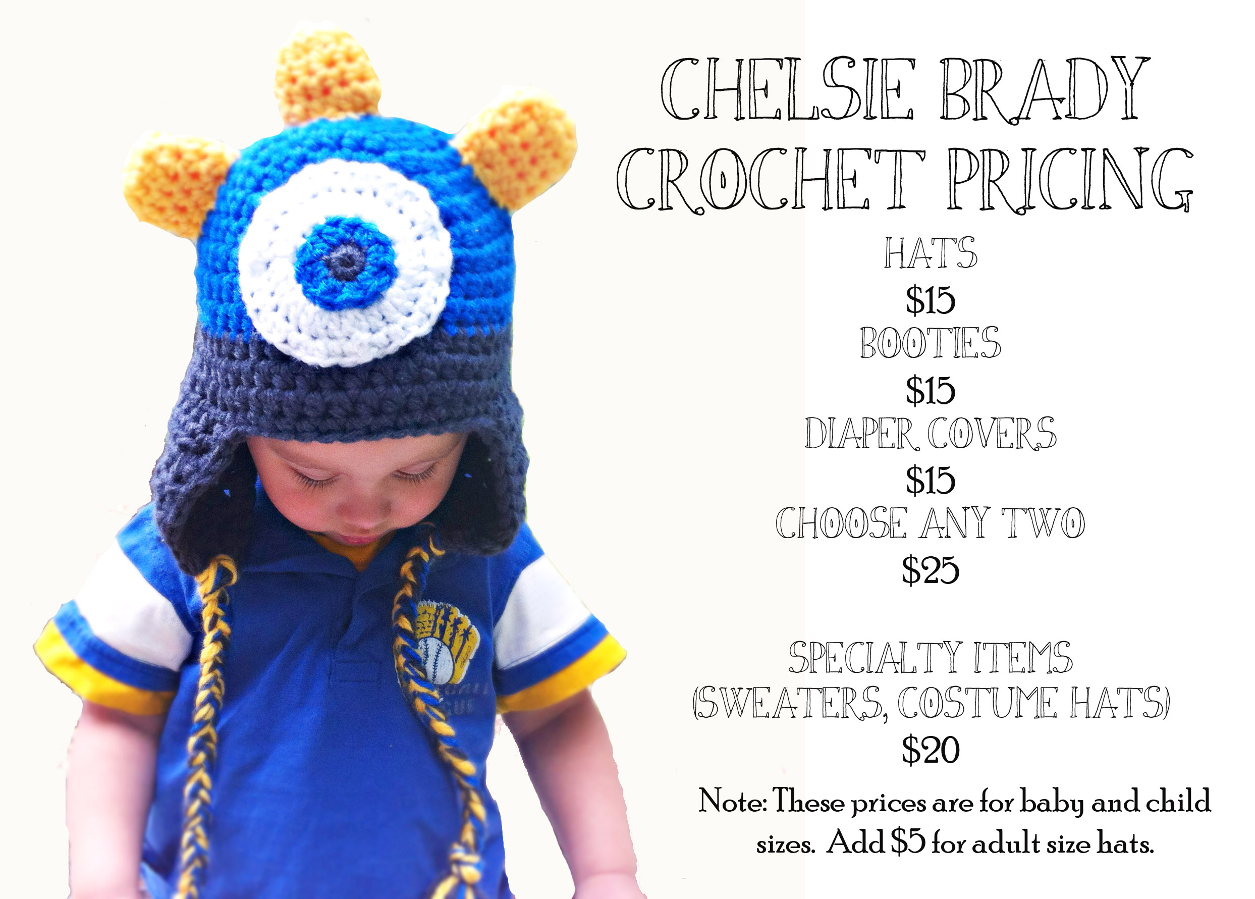 If you see something online that you like, but I don’t have listed here, send me a message- I’ll let you know if I can do it and how much it would be. For instance, I only have pictures of monster and owl hats, but I could do monkeys, hippos, foxes (I’m actually working on a fox right now), pretty much whatever you can dream up! Also, the costume hats come with a matching tail. (See the lion and lamb Halloween costumes I did).