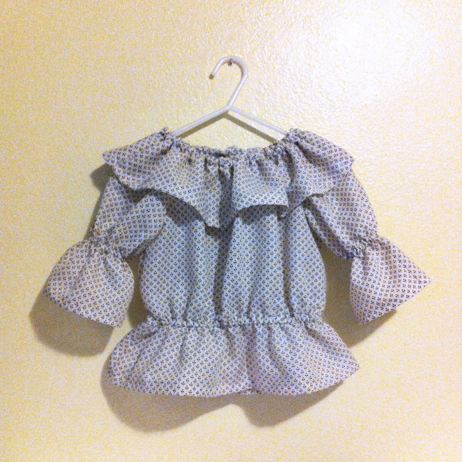 The skirt is definitely a cotton, maybe a blend, but mostly cotton. When I made my version, the pattern didn’t have the right size for the hem ruffle. It has been fixed, but not by the time I made this outfit, so my ruffle is not quite as ruffled as it is supposed to be. The next one I make will be more accurate.