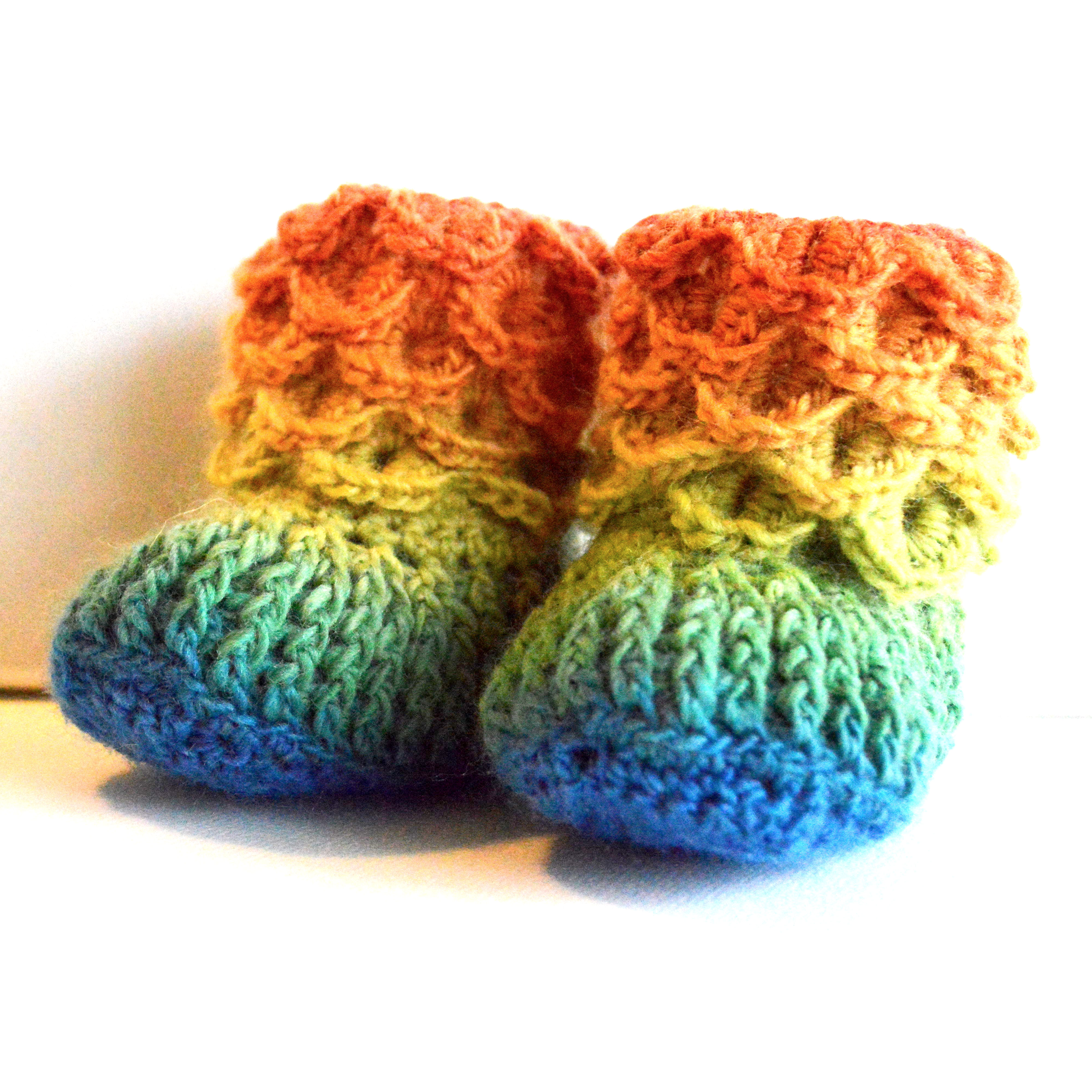 I stopped after just a couple rows of crocodile stitches, but everything worked out well! And, my yarn came, so I have been working on the real booties.