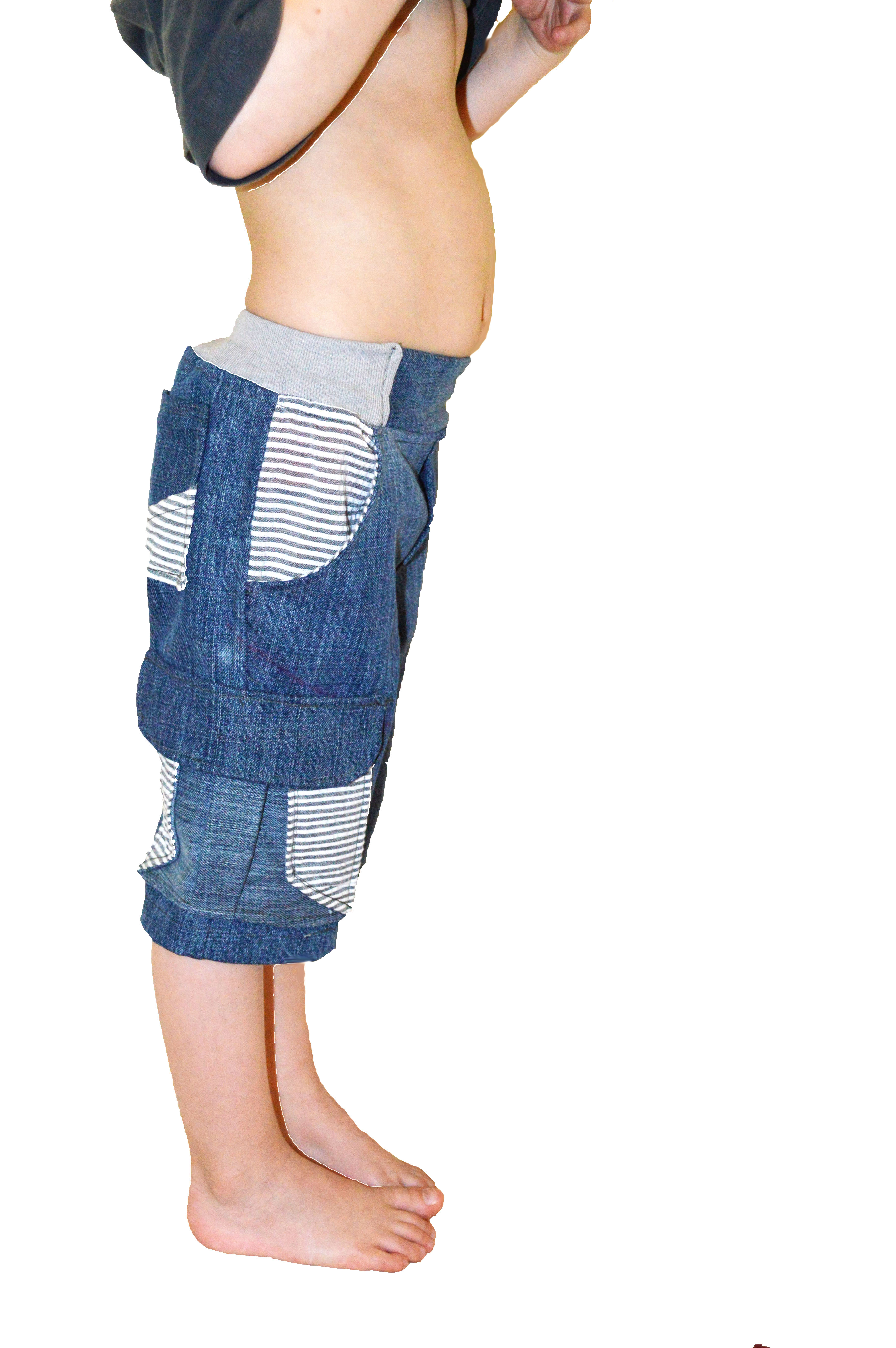 The first thing he said after putting them on was, “Mom, they’re so comfy!” So, that’s a good thing. This pattern doesn’t have buttons or zippers; the waistband is ribbing (but I added elastic to help keep them up- the denim is a little heavy).
