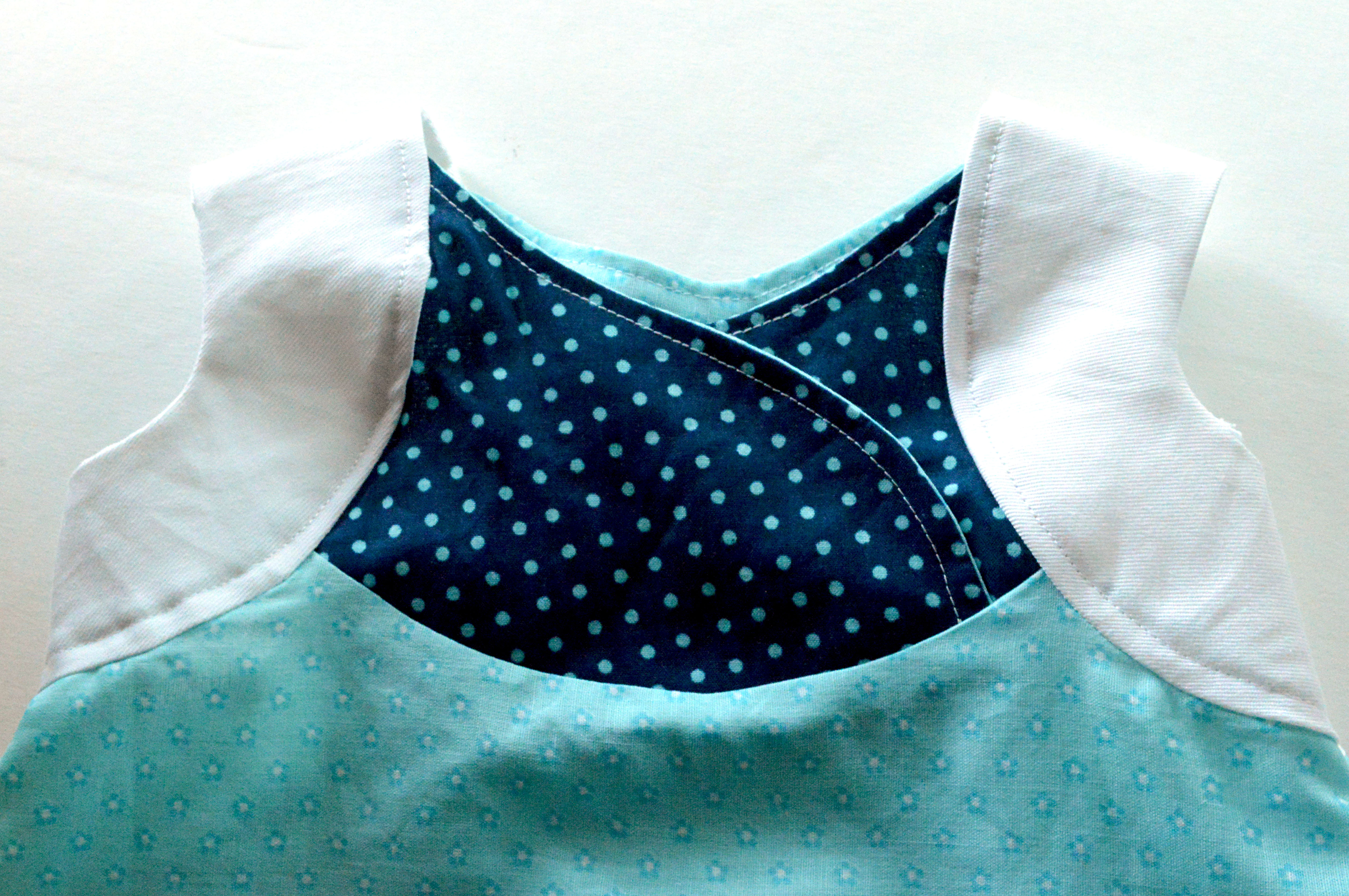 It’s a 3-6 month size with a crossover yoke. I like that there are no buttons or zippers.