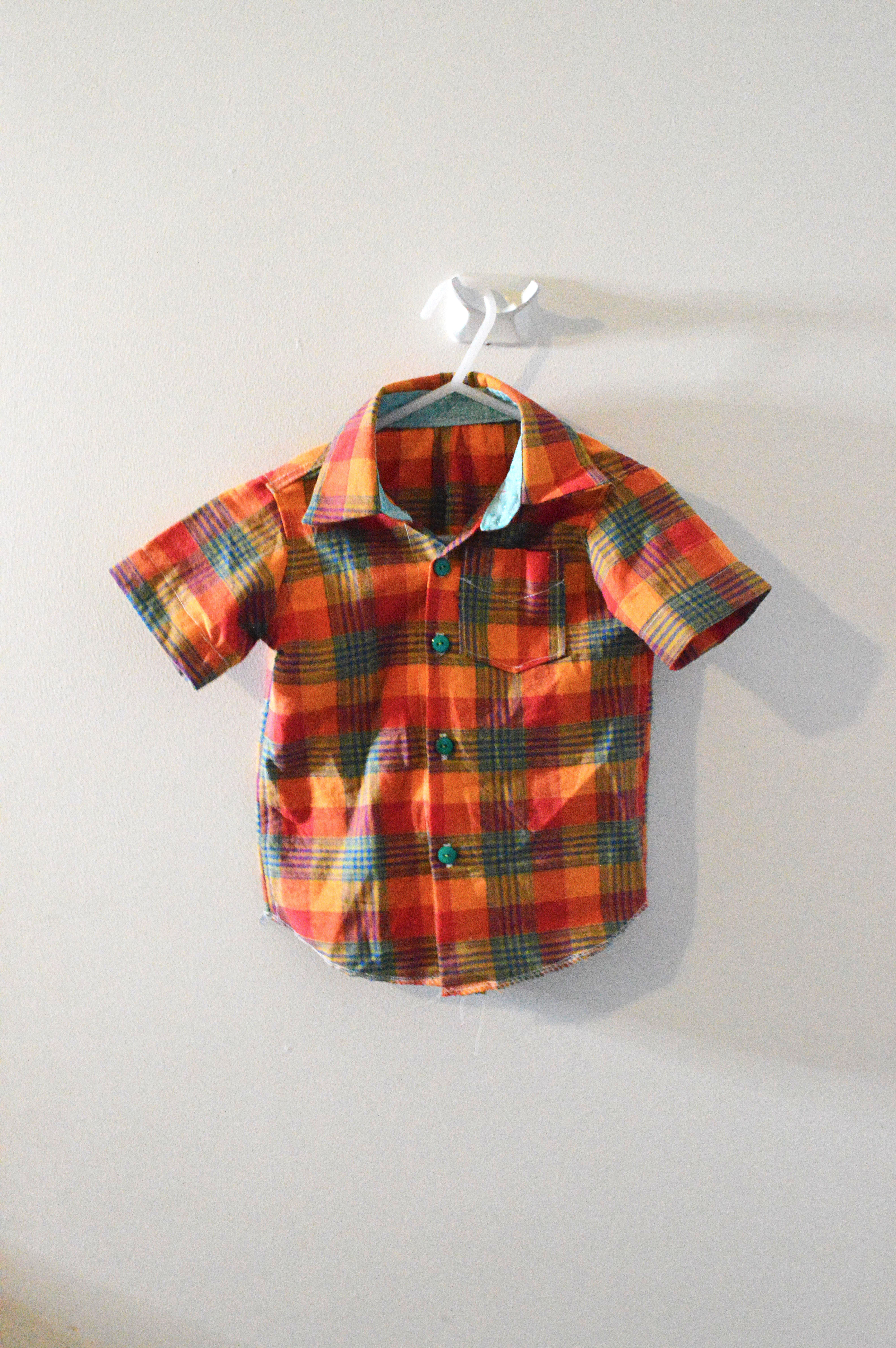 Are you sick of this fabric yet? I had some leftover from all of the other projects I’ve made from it (actually I think I have more), so I thought I’d try something for the boys. They have very few short sleeved dress clothes, so I decided to give it a go. If it worked… great! If not, no big deal. I think it worked, but my picky kiddos won’t put it on, so I am not sure.