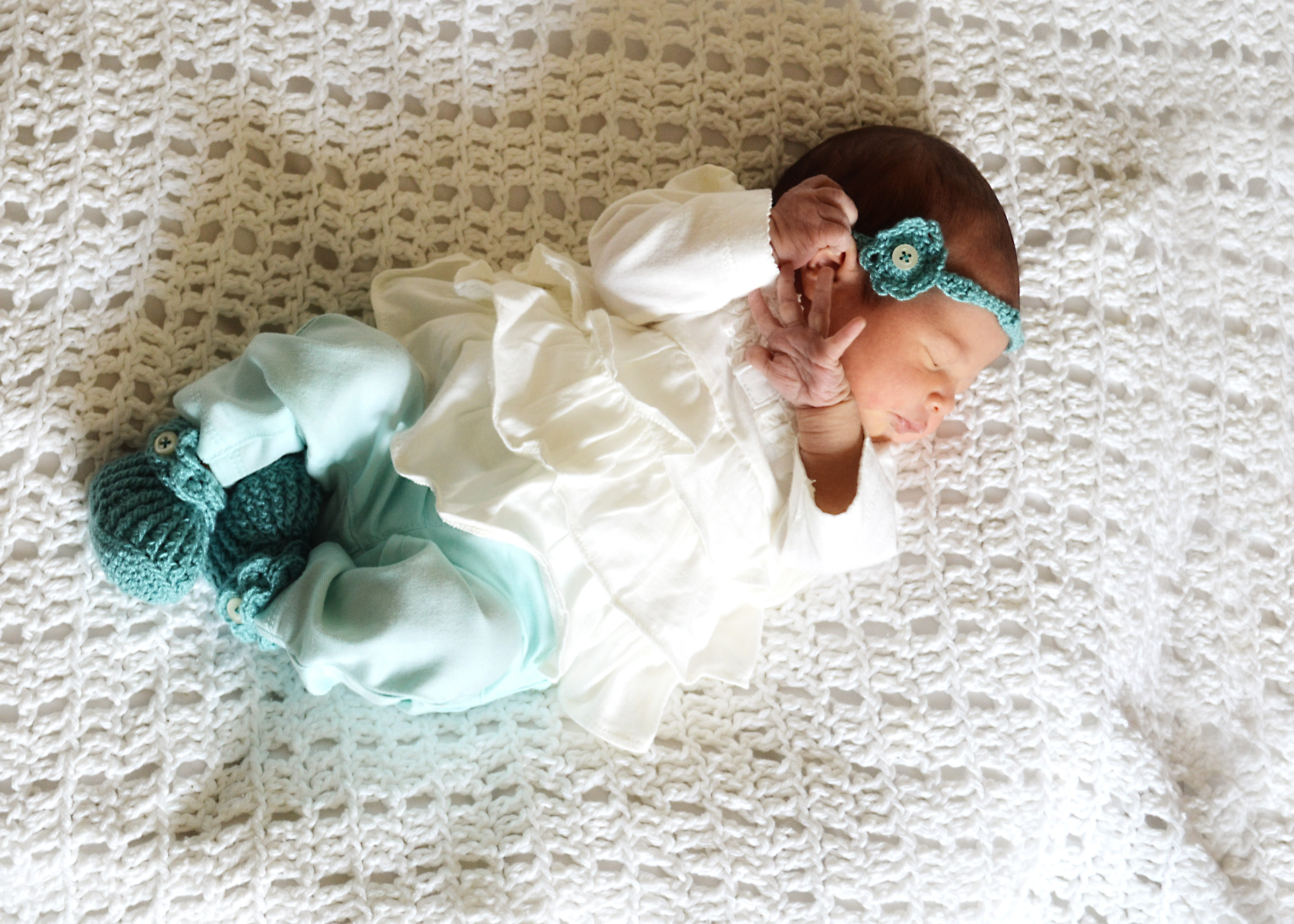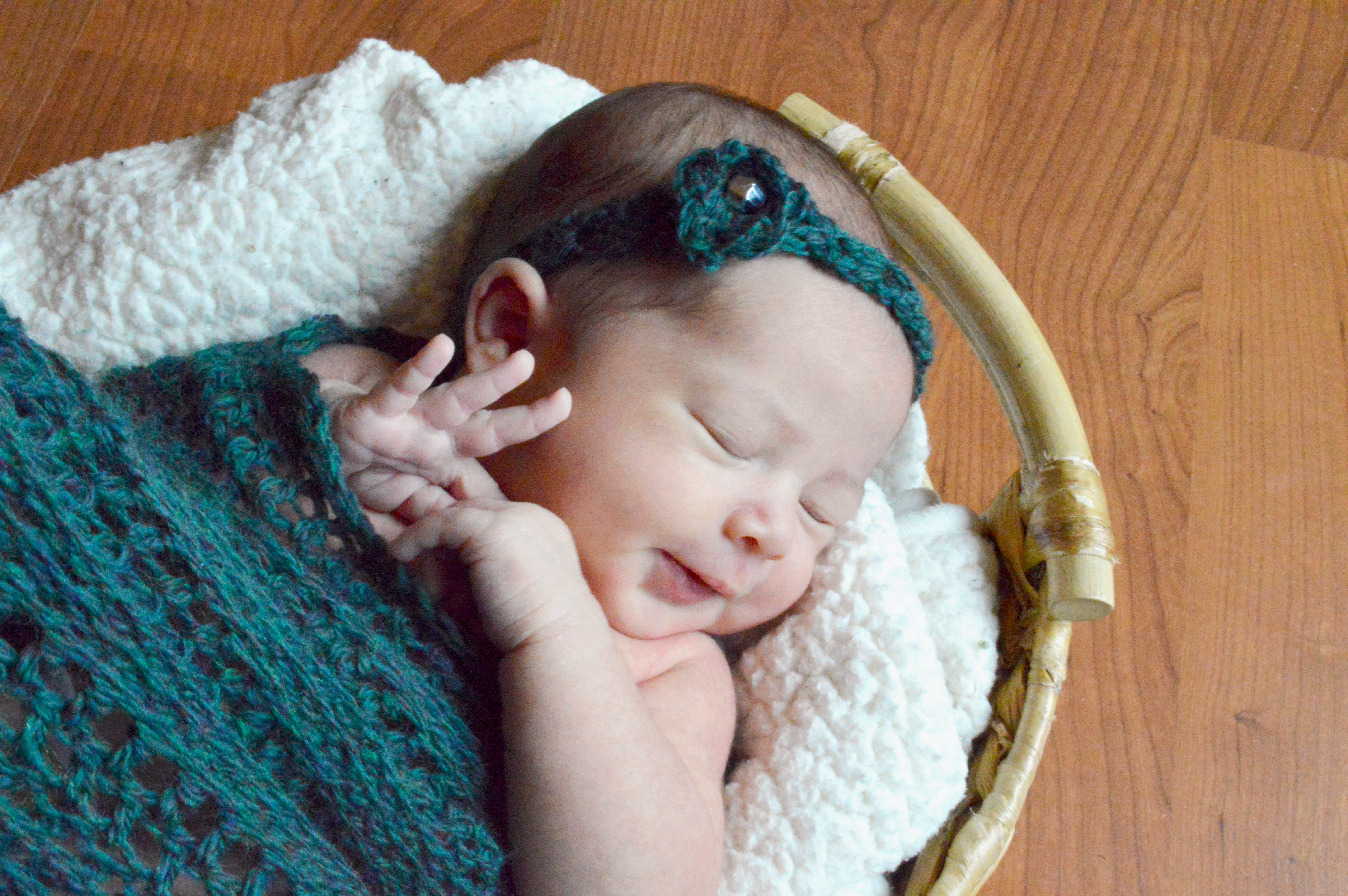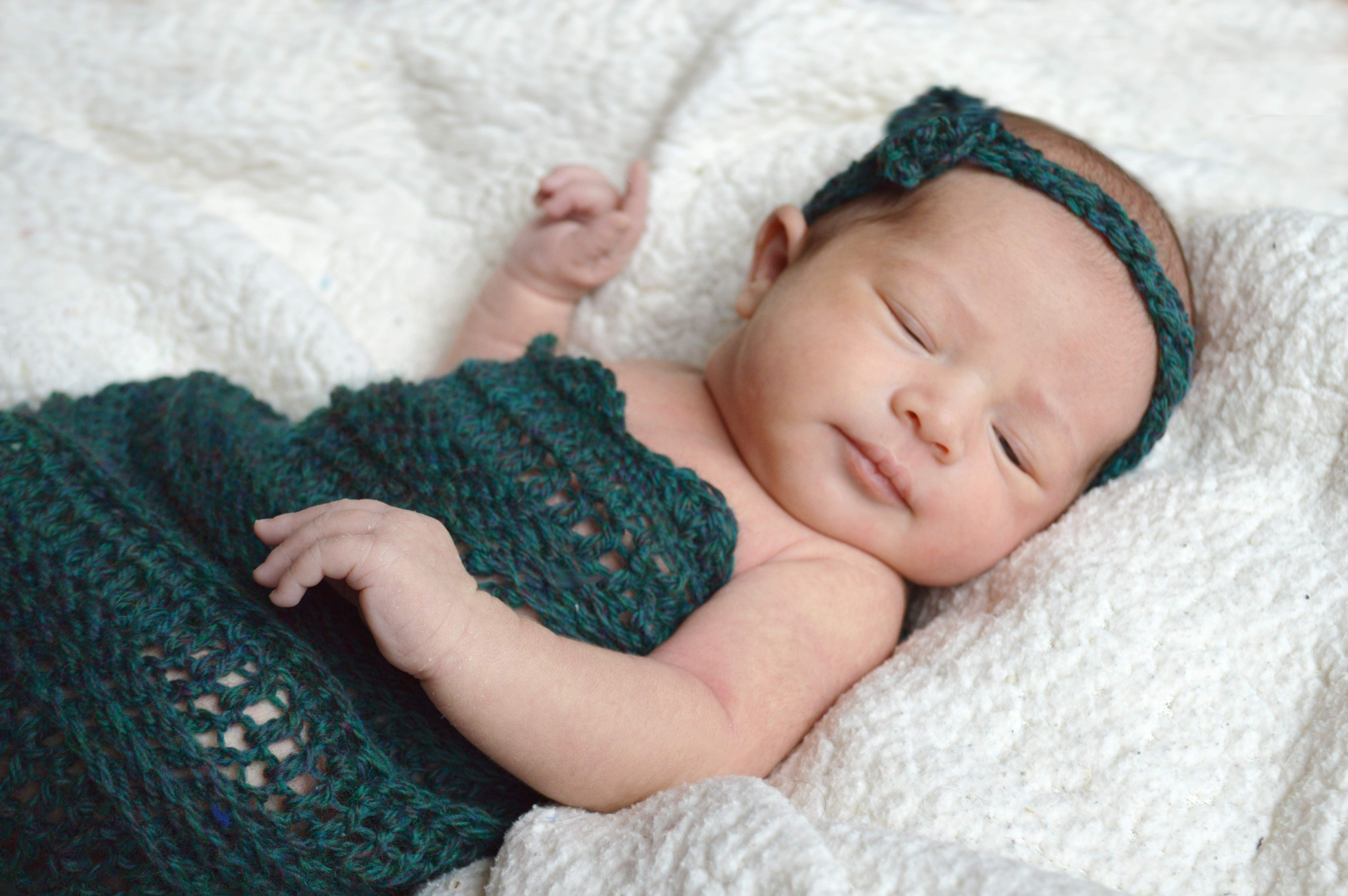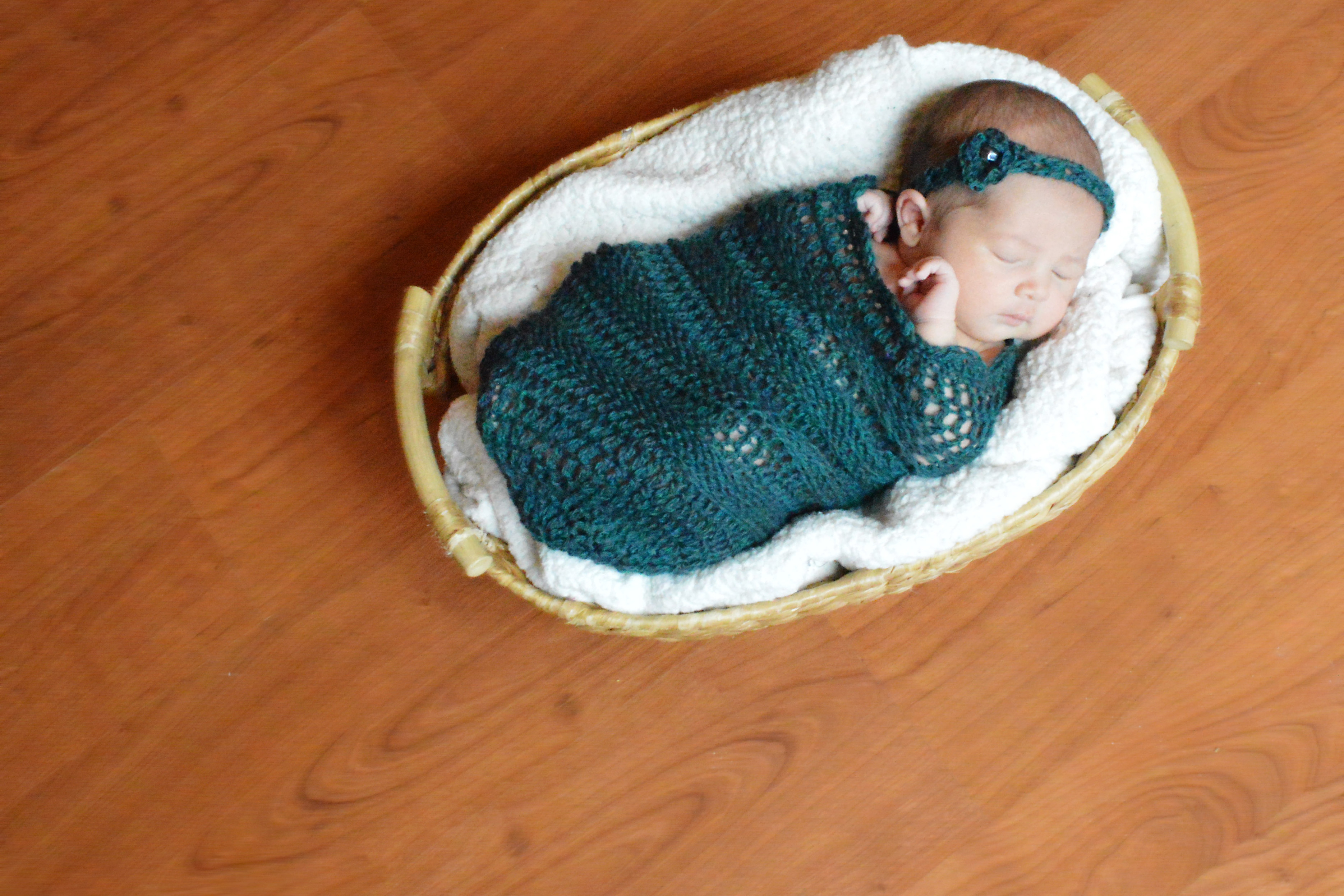 I made this cocoon and headband in anticipation of getting new photos for my wall. I think I’d like to incorporate my favorite color (peacock blue) into my house. This yarn is soft and yummy- from Knit Picks.