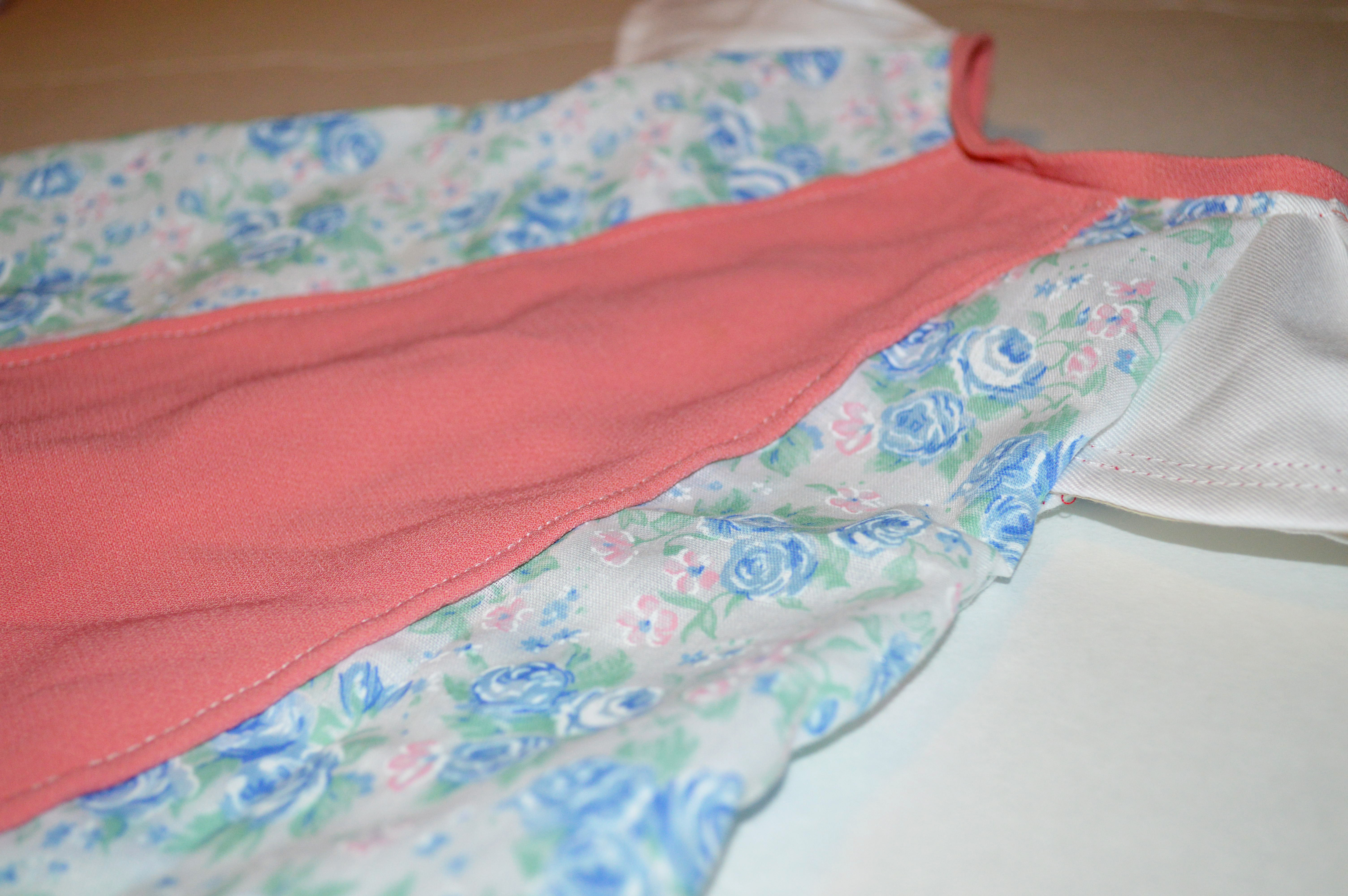 The pattern needs help, so I’m not sure how much wear we’ll get out of this. Perhaps I’ll take it apart and make the necessary adjustments because it’s kind of cute. I love the floral print and coral combination.