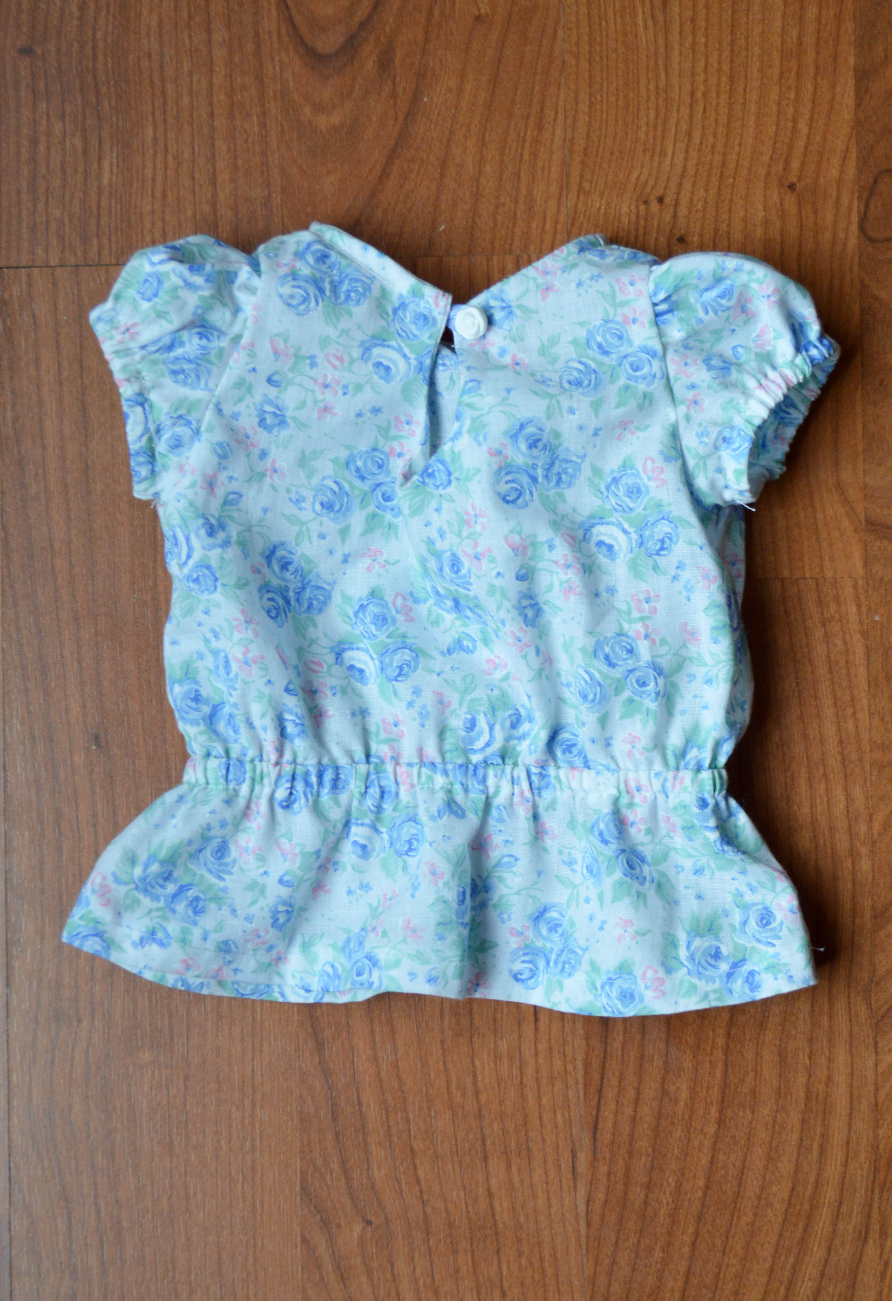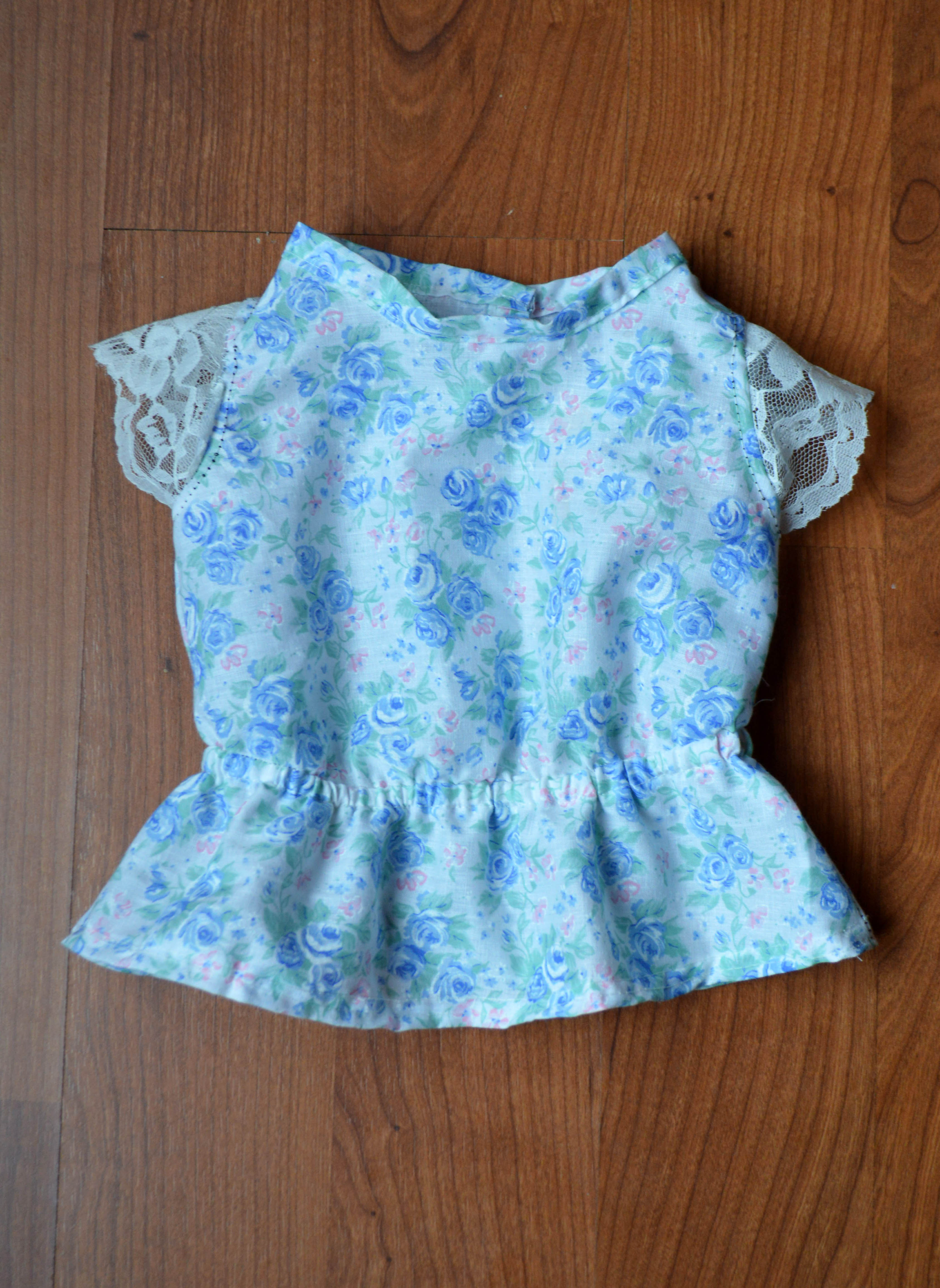 #4 I liked this fabric to match the cap, so I did one more floral version. This time I used lace for the sleeves and omitted the keyhole. I also did the binding at the neckline differently. I need to redo it, though. Something got all wonky.