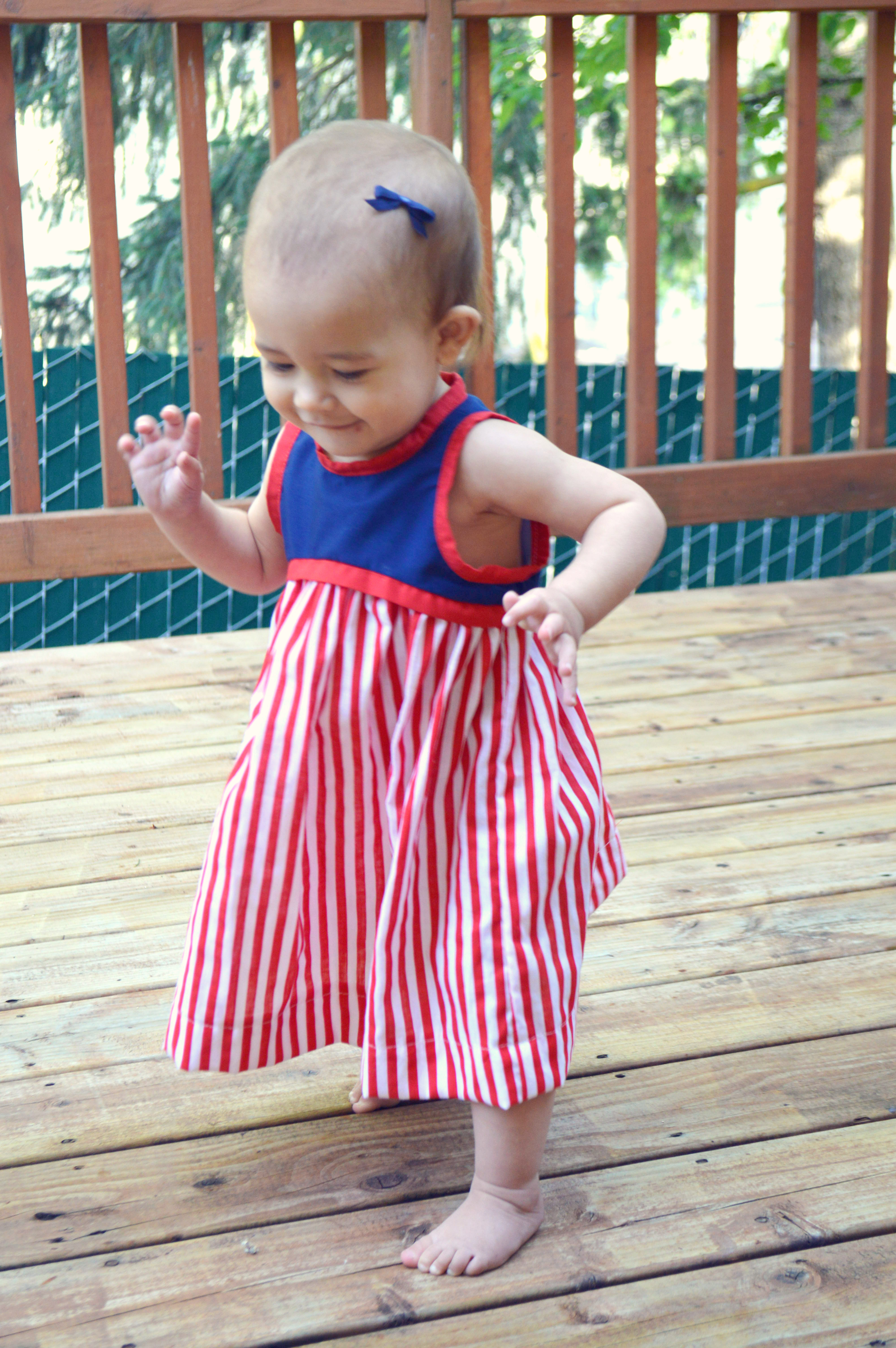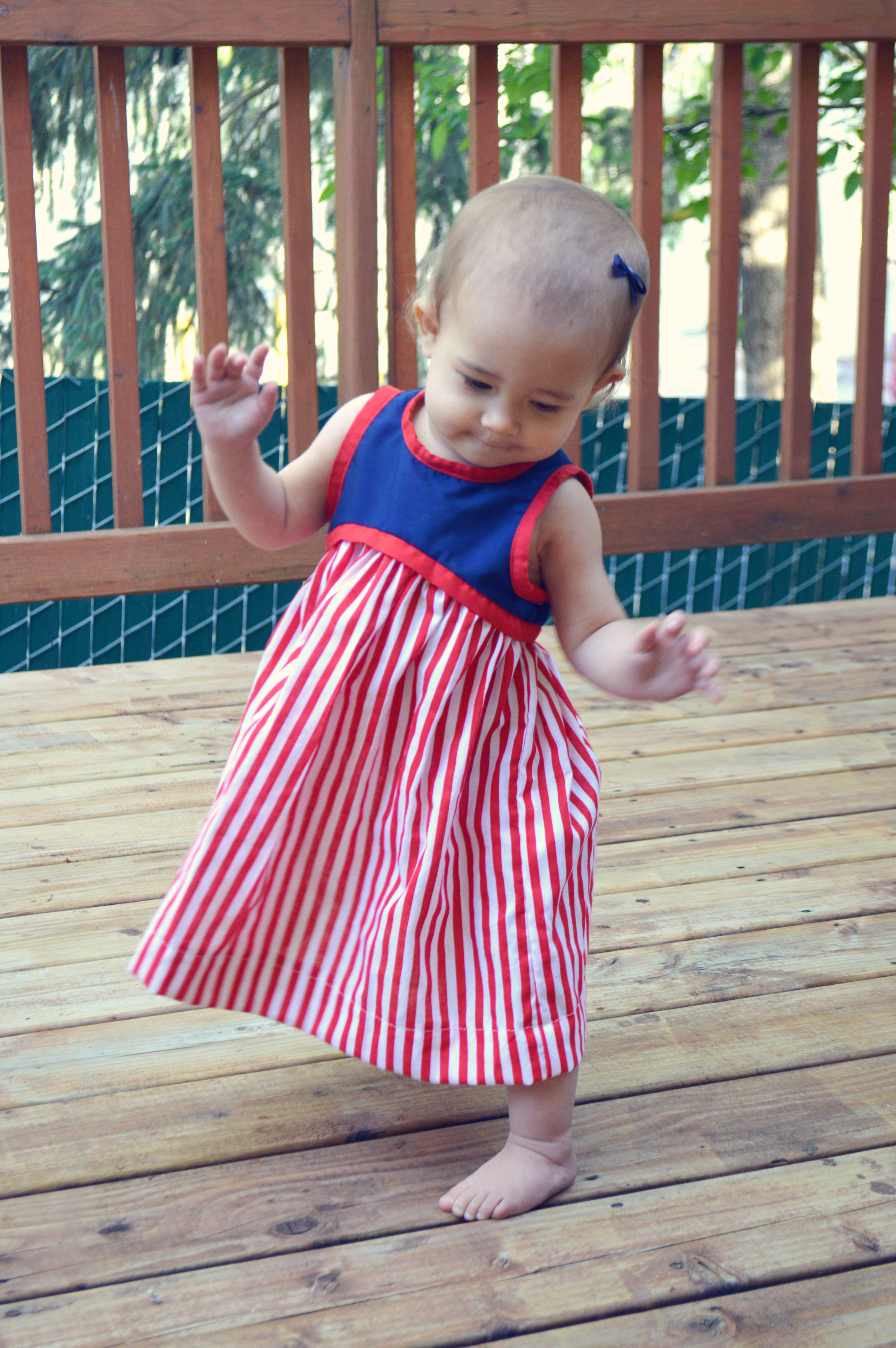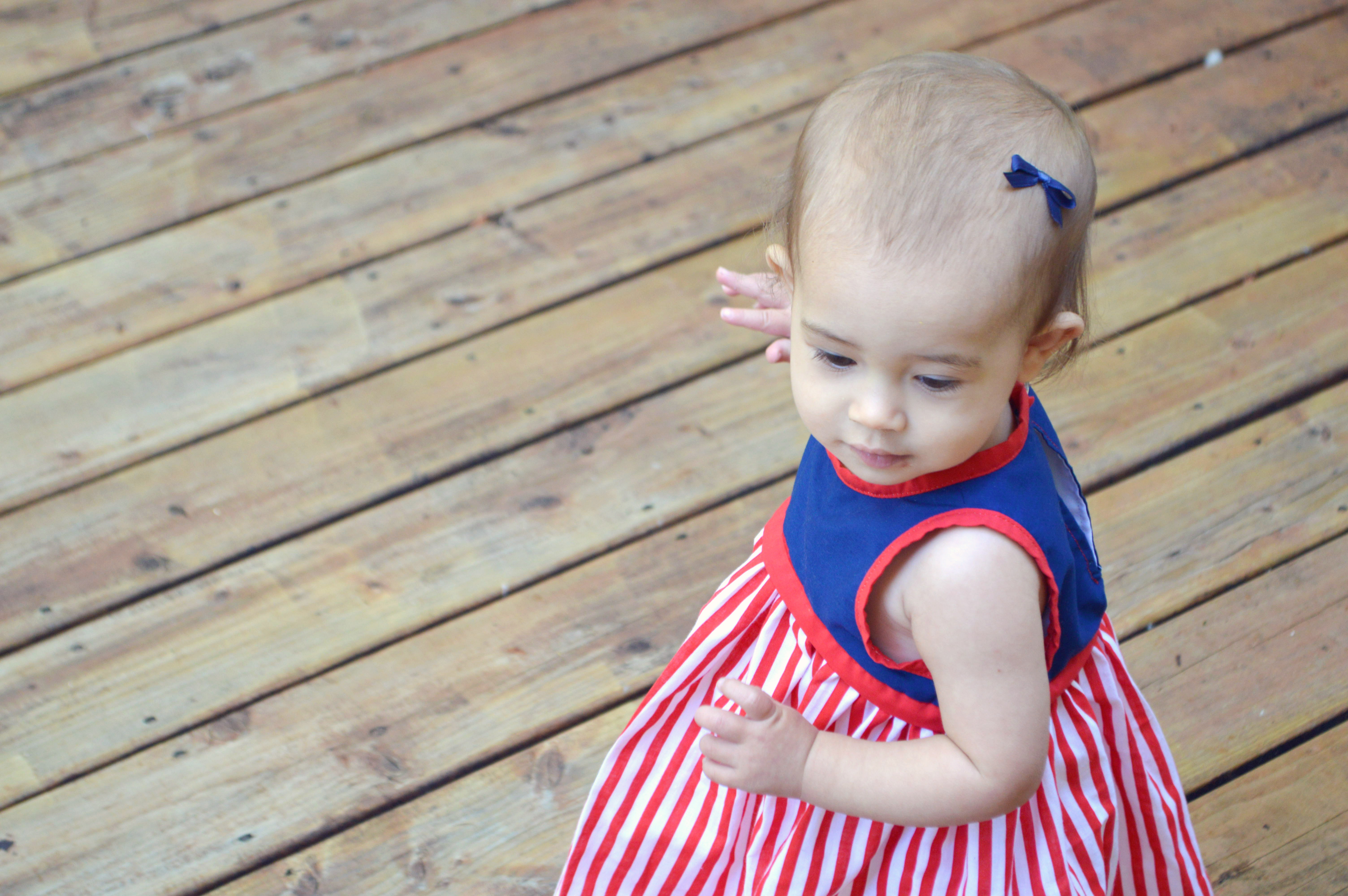 (The length has been edited since finishing this dress. The skirt is supposed to hit right at the knee, so it’s obviously too long on my tiny lady. That’s one thing that’s nice about the pattern, though… you can customize it to be really any length.)
