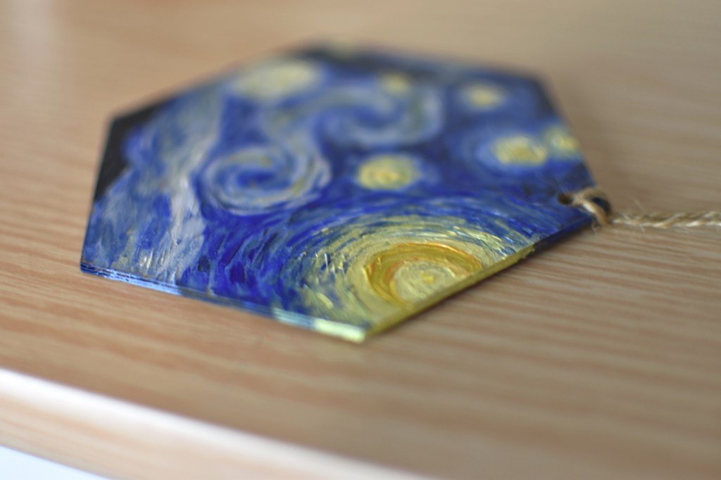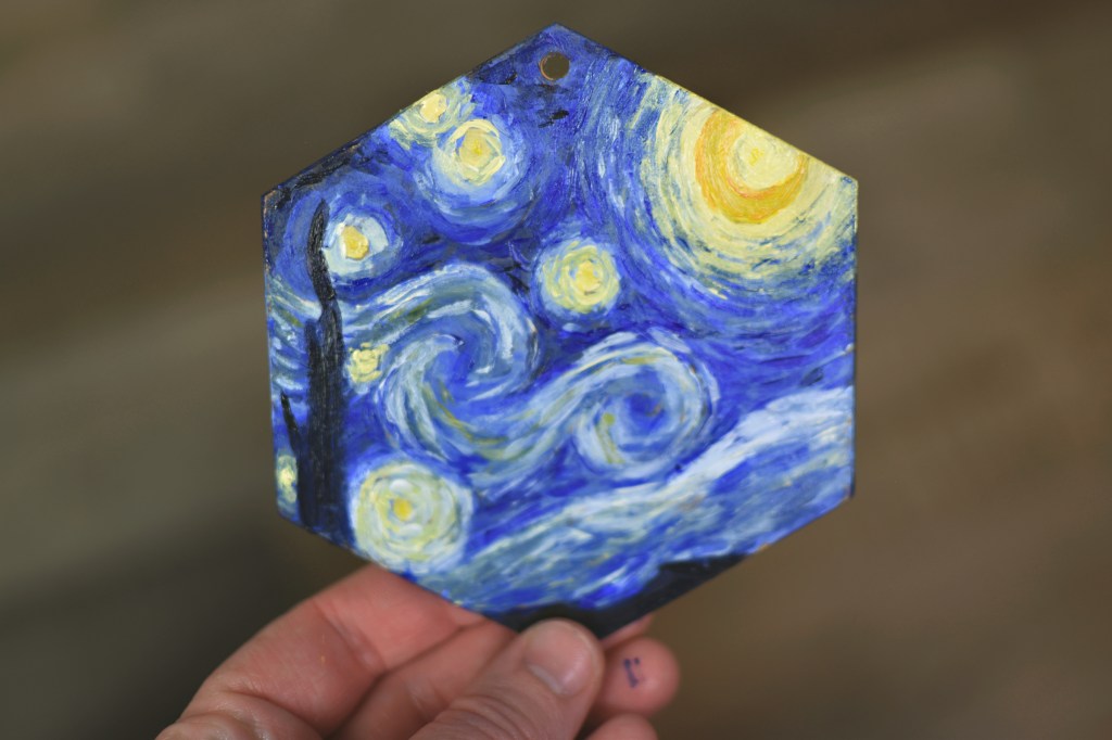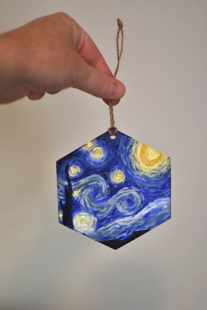 I thought about famous art pieces and my mind immediately went to Starry Night by Van Gogh. I was going to make a felted Starry Night ornament, but I decided instead to actually do a painted ornament.