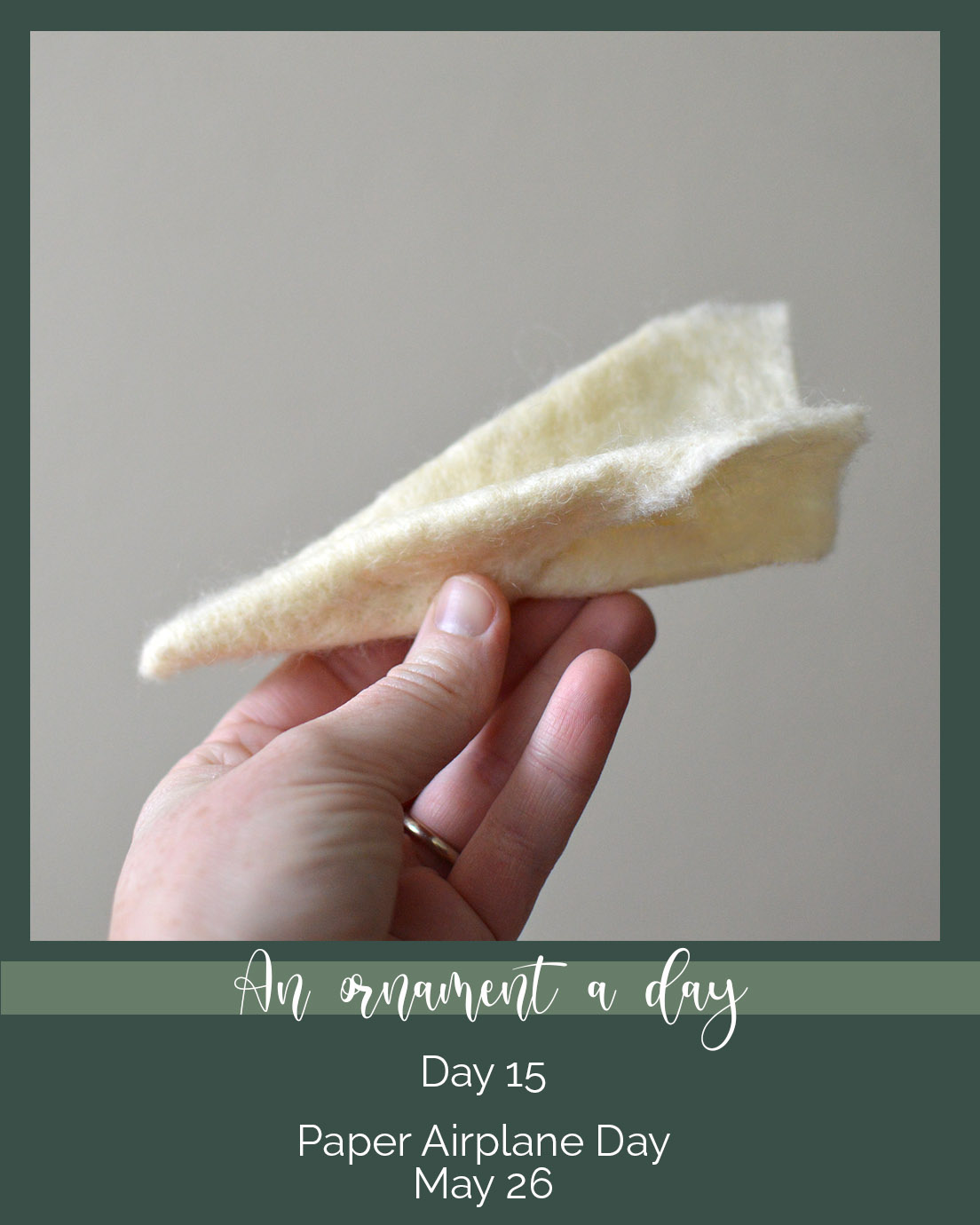 Today’s ornament comes from the super fun holiday of Paper Airplane Day. My kids all love to fold paper airplanes, but especially my son Lucas. (He is also obsessed with dragons and origami). I am hoping he will fold me some of his favorites tomorrow. If he does, I will post them.